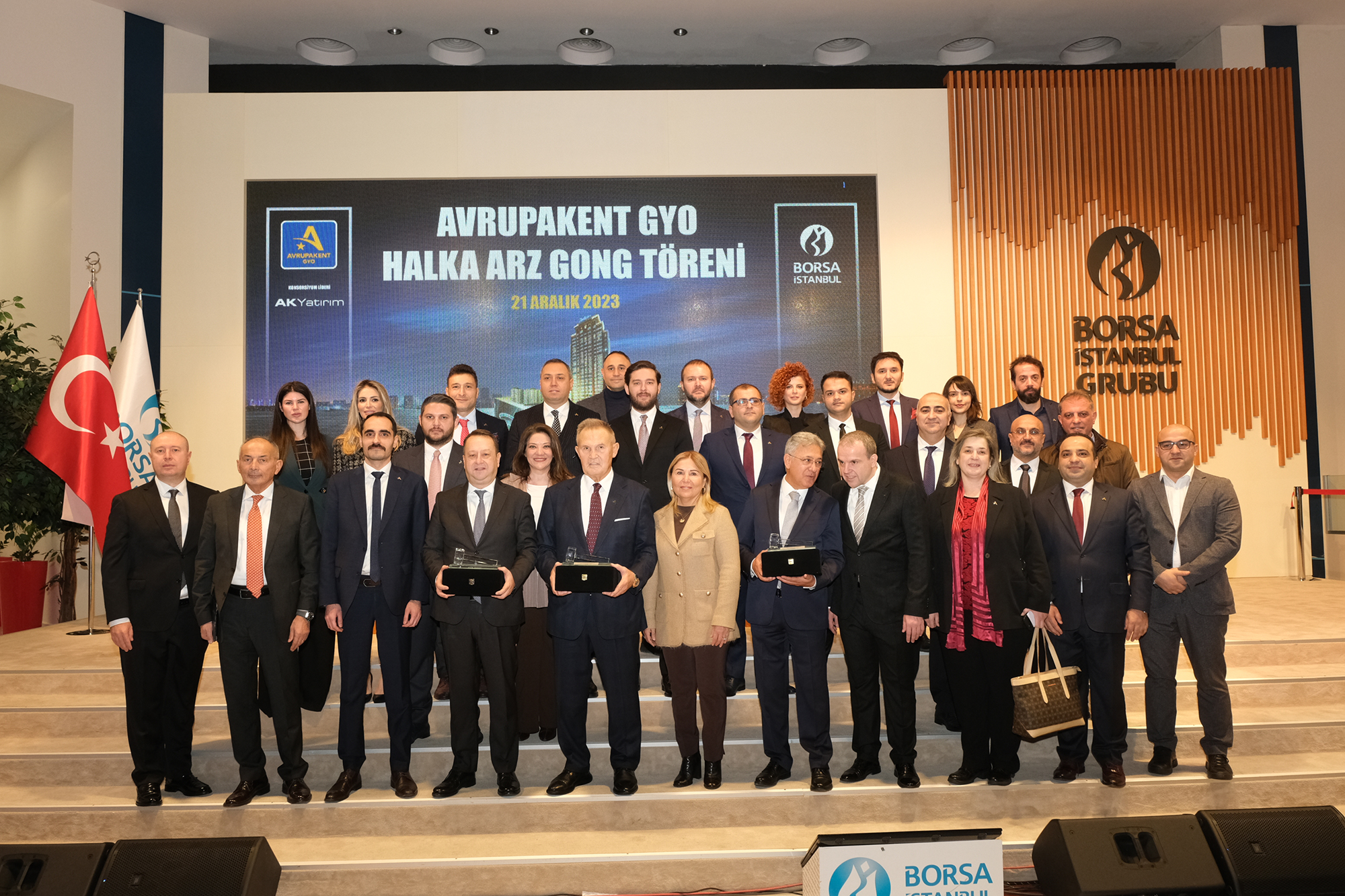 Avrupakent GYO Halka Arz Gong Töreni 21 Aralık 2023 tarihinde gerçekleşti. Tören çeşitli kanallardan canlı yayınlandı.